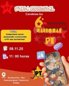 2 min read Candeias Resenha Política Rms Candeias: Juventude em movimento! Congresso municipal do PT debate o papel dos jovens na transformação social 6 de novembro de 2025 admin
